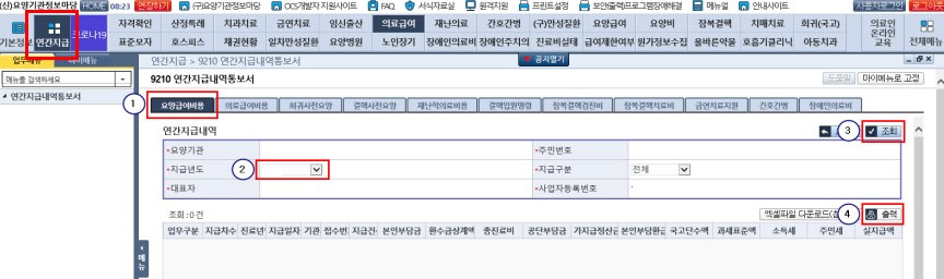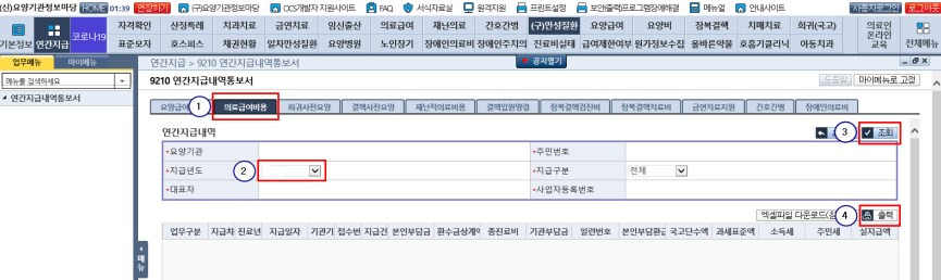 2025년도 요양기관 연간지급내역 통보서 및 산재 진료비지급현황 출력하기
